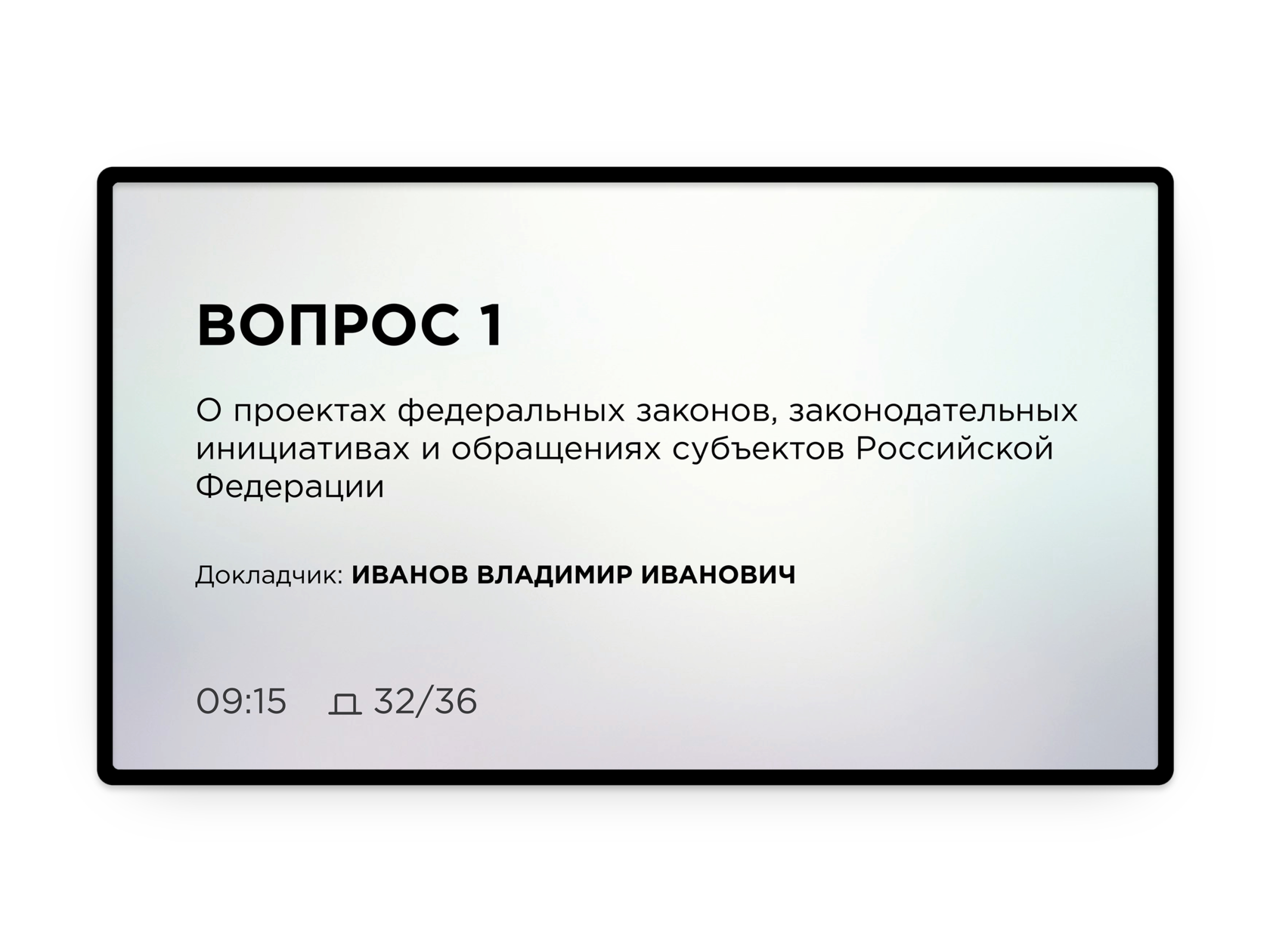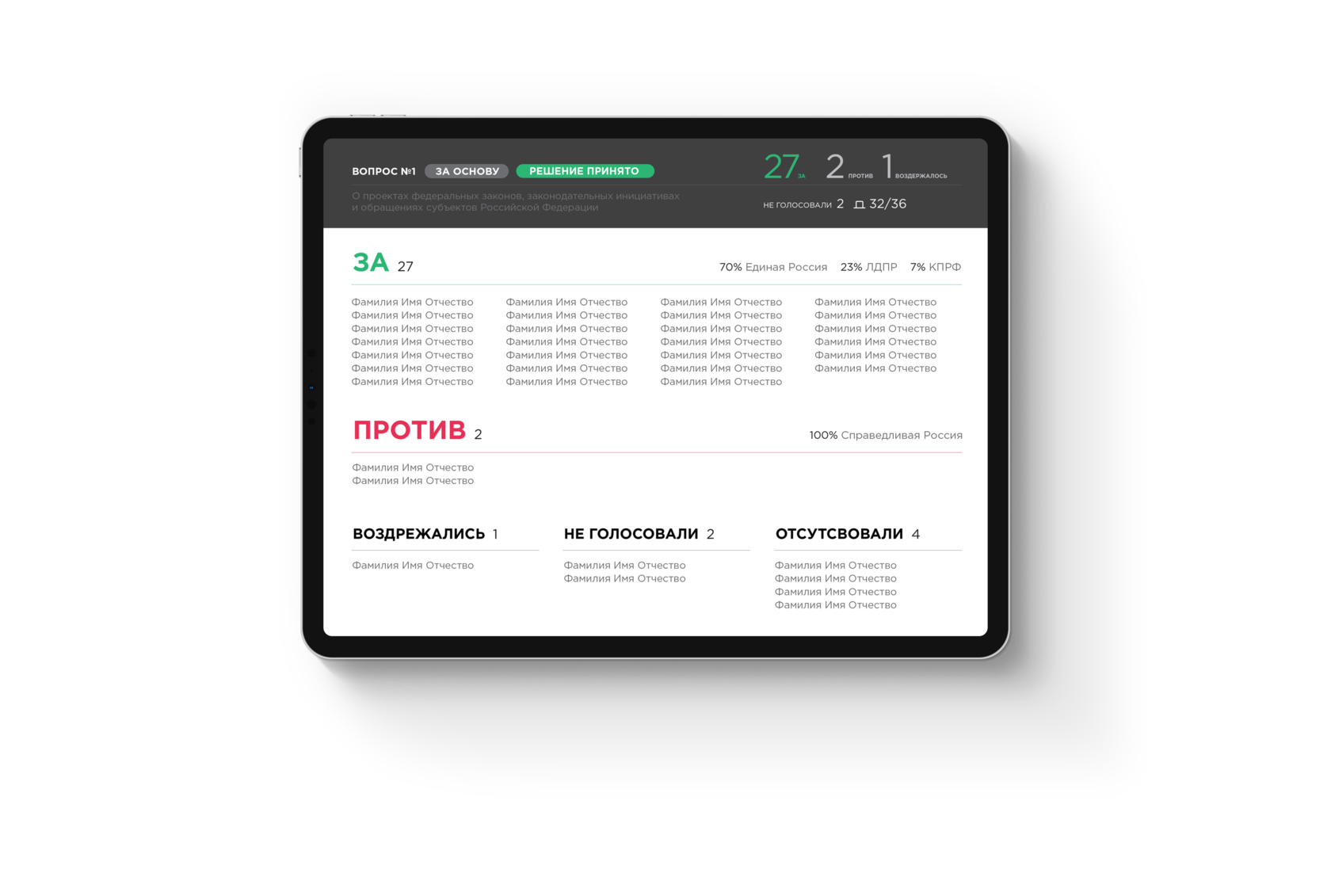 Автоматизированная система для отображения хода и результатов голосования. Полная интеграция с конференц-системами фирм Bosch, Shure, Televic, Beyerdynamic, Sennheiser.